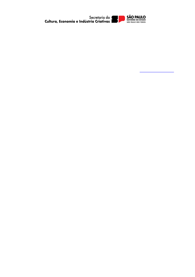 A Secretaria da Cultura, Economia e Indústria Criativas do Governo do Estado de São Paulo, torna sem efeito a Publicação de 17 de julho de 2024, pag. 66, Seção III – Caderno Executivo – Diário Oficial do Estado de São Paulo, devendo os proponentes com projetos inscritos reapresentar o projeto de acordo com este chamamento público para a seleção de projetos para APOIO À PRODUÇÃO AUDIOVISUAL BRASILEIRA, em observância à Lei n.º 14.903/2024 e a Lei Federal n.º 14.399/2022, bem como, de toda legislação complementar relacionada e as condições e exigências estabelecidas neste Edital e seus anexos.