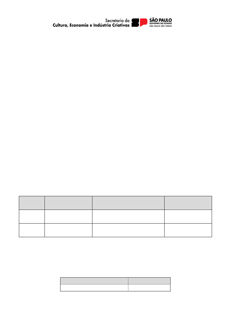 Proponente Pessoa Jurídica que comprove sede ou domicílio há mais de 02 (dois) anos no Estado de São Paulo, contados do último dia do período de inscrição neste Edital, e que tenha como objetivo a realização de atividades artísticas e/ou culturais.